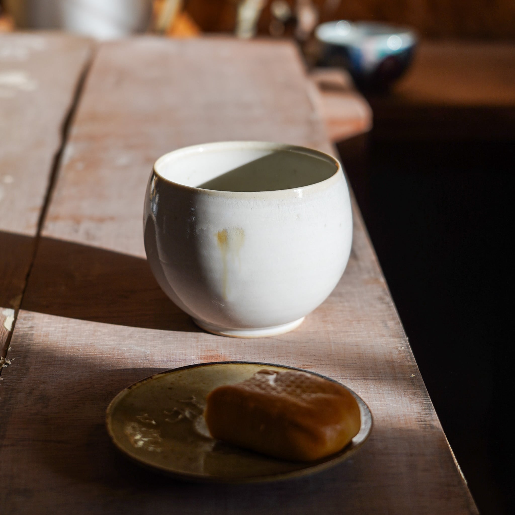 丸いフォルムが手に馴染みやすい雪白の湯呑み。緑茶やほうじ茶などお茶の色味がよくわかるお湯呑みです。